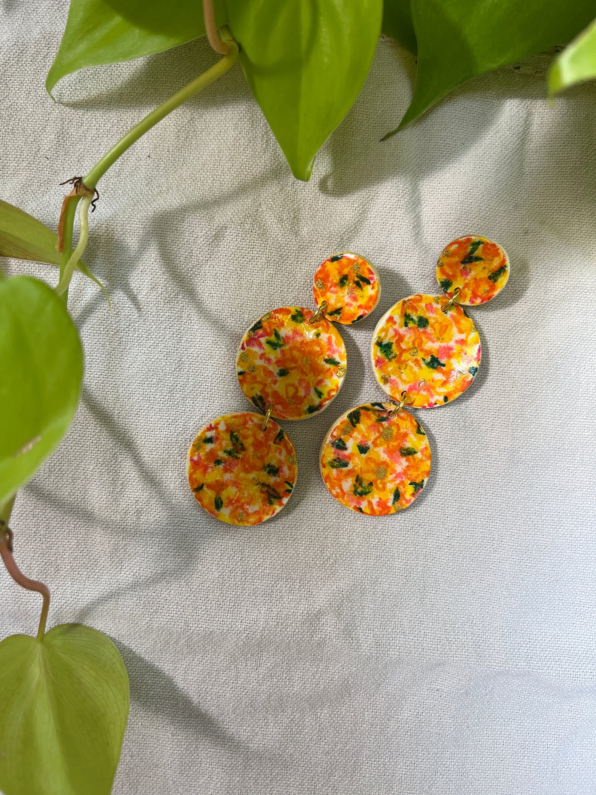 Handmade paperclay earrings. These earrings are handmade from start to finish, colored with pastels, painted on with acrylics, and coated with a high gloss acrylic varnish.